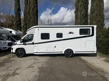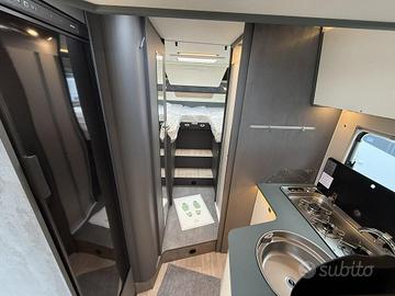 CARATTERISTICHE PRINCIPALI DI QUESTO VEICOLO: Tipologia: Camper Motore: Patente: B Telaio: Fiat Ducato Meccanica: Fiat Ducato 35 2.2 mjt 140cv Cilindrata: 2184 cm³ Cavalli: 140 cv Alimentazione: Diesel Potenza: 140 cv Cambio: Manuale Marce: 6 Trasmissione: Anteriore Cavalli Fiscali: 21 cv Euro: 6df Peso Potenza: 34 Dimensioni: Altezza: 295 cm Larghezza: 232 cm Lunghezza: 740 cm Larghezza Interna: 218 cm Peso a pieno carico: 3500 kg Peso Vuoto: 2986 kg Assi: 2 Capacità Frigo: 140 L Posti Omologati: 4 Posti Letto: 2 Serbatoio Acqua: 110 L Serbatoio Acque Grigie: 90 L Serbatoio WC: 18 L Caratteristiche Letto Basculante: 1 Letti Gemelli: 2 Cucina: Centrale Aria Condizionata: No Toilet: Si Frigo: Si Nuovo Laika Kosmo L 409 DS da immatricolare - 4 posti, letti gemelli + basculante, Fiat Ducato 140 CV. Lunghezza 7,40. Layout con letti gemelli posteriori e letto basculante matrimoniale anteriore, grande living con doppia seduta contrapposta e tavolo centrale regolabile e ribaltabile con sedili guida girevoli e tavolo con gamba telescopica. Un vero e proprio salotto: luminosissimo grazie al grande skyroof e alle finestre laterali e a una completa illuminazione full Led. La cucina ad angolo è compatta ma molto funzionale, con piano cottura, lavello inox, grandi cassetti e pensili capienti. Il blocco toilette è elegante e pratico, con wc, lavabo e numerosi vani portaoggetti; di fronte la doccia indipendente con colonna e pedana in legno garantisce il comfort di casa anche in viaggio. All'esterno, il camper offre un grande garage posteriore ideale per biciclette o attrezzatura da campeggio. Prezzo di listino compreso di accessori e messa su strada a € 90.202 Prezzo PROMO chiavi in mano senza ritiro dell'usato: € 78.900 Equipaggiamenti del veicolo: -...[Cod: 1093907-845]