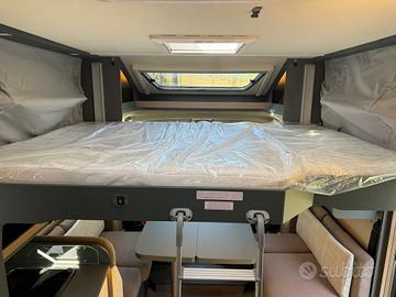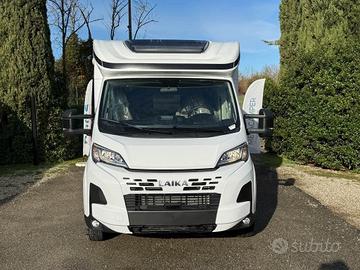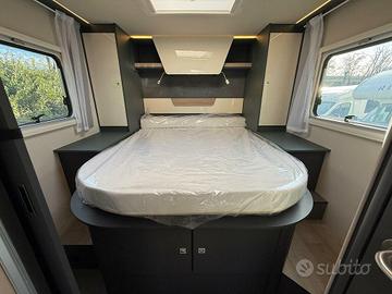 CARATTERISTICHE PRINCIPALI DI QUESTO VEICOLO: Tipologia: Camper Motore: Patente: B Telaio: Fiat Ducato Meccanica: Fiat Ducato 35 2.2 mjt 140cv Cilindrata: 2184 cm³ Cavalli: 140 cv Alimentazione: Diesel Potenza: 140 cv Cambio: Manuale Marce: 6 Trasmissione: Anteriore Cavalli Fiscali: 21 cv Euro: 6df Peso Potenza: 34 Dimensioni: Altezza: 295 cm Larghezza: 232 cm Lunghezza: 740 cm Larghezza Interna: 218 cm Peso a pieno carico: 3500 kg Peso Vuoto: 3017 kg Assi: 2 Capacità Frigo: 140 L Posti Omologati: 4 Posti Letto: 4 Serbatoio Acqua: 110 L Serbatoio Acque Grigie: 90 L Serbatoio WC: 18 L Caratteristiche Letto Basculante: 1 Letto Matrimoniale: 1 Cucina: Centrale Aria Condizionata: No Toilet: Si Frigo: Si Laika Kosmo L 412 DS nuovo da immatricolare - 4 posti, letto centrale + basculante, Fiat Ducato 140 CV. Lunghezza 7,40. Layout con letto matrimoniale centrale posteriore e letto basculante matrimoniale anteriore, grande living "face to face", bagno con doccia separata e allestimento interno impreziosito da Pacchetto One, tappezzeria Siena e cuscini Liguria. All'ingresso ci si affaccia su un ampio soggiorno con doppia seduta contrapposta e tavolo centrale regolabile e ribaltabile: un vero salotto, luminosissimo grazie al grande skyroof e alle finestre laterali e a una completa illuminazione full Led. Sedili cabina girevoli e arredi moderni nei toni grigio/tortora, con la tappezzeria Siena e i cuscini Liguria che rendono l'ambiente caldo e accogliente. La cucina ad angolo è compatta ma molto funzionale, con piano cottura, lavello inox, grandi cassetti e pensili capienti. In coda troviamo una vera camera matrimoniale con letto centrale, armadi e pensili, mentre il letto basculante elettrico sopra la dinette offre altri due posti letto pronti in pochi...[Cod: 1091015-845]