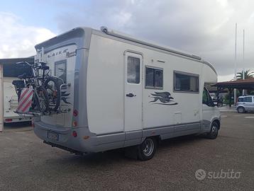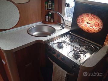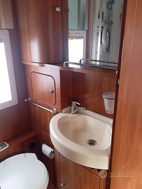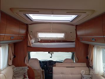 Tenuto sempre in box chiuso. Ha, come accessori, tendalino con luci a led, portabici Fiamma 4 posti, doppio serbatoio acque chiare, montati entrambi sotto in modo la lasciare completamente libero lo spazio del doppio pavimento, antenna satellitare ( da sistemare), antenna digitale, retro camera, pannello solare, inverter con tutte le prese collegate, Viesa. Il motore è un Iveco 3000 con aria condizionata, cambio manuale 6 marce, consumi ridottissimi ( per un camper), completamente tutto a led di serie. Maxi oblò centrale. Cuscini supplementari per formare un unico divano circolare. Tavolo dinette allungabile. Trio-gas. Molto ben tenuto.