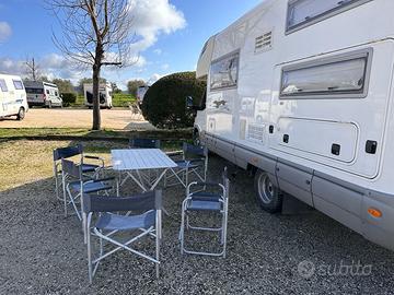 MECCANICA E MANUTENZIONE CERTIFICATA Il cuore del mezzo è il potente IVECO Daily 35015. Il camper ha percorso solo 102.000 km ed è stato sempre conservato al coperto. Pneumatici: Dotato di 6 pneumatici Michelin Agilis Cross Climate Camping (195/75 R16) nuovi, sostituiti a dicembre 2023 al chilometraggio di 84.534 km. Valvole oltre 1.000€. Batterie: Entrambe le unità (servizi e motore) sono state appena sostituite con componenti nuovi. Affidabilità Cellula: Eseguite sigillature complete della cellula per una protezione totale. Il mezzo è revisionato e pronto a partire. INTERNI DI PREGIO La disposizione interna è pensata per la massima praticità, con finiture in legno di alta qualità e ampi spazi: Zona Notte: Mansardato spazioso e due letti singoli posteriori sempre pronti (a castello) con reti di protezione e scaletta integrata. Cucina & Frigo: Equipaggiato con frigorifero trivalente Dometic di grande volume con cella freezer separata. È presente una ventola di raffreddamento supplementare per garantire freschezza anche con temperature estive elevate. Bagno & Clima: Toilette curata con box doccia separato (pannelli rigidi) e finestra. Per il massimo comfort, è installato un oblò con ventola per un ricircolo d'aria ottimale. DOTAZIONI EXTRA E AUTONOMIA LIBERA Energia: 2 Pannelli solari per la ricarica costante delle batterie. Utility: Doccia esterna (caldo/freddo) e attacco corrente 220V esterno. Sicurezza: Telecamera posteriore con monitor dedicato e visione notturna. Trasporto: Portabici Fiamma a 4 posti reclinabile. ACCESSORI INCLUSI NEL PREZZO Kit Inverno: Oscuranti termici esterni specifici (cabina e motore). Area Relax: Tavolo pieghevole in alluminio e 6 sedie da campeggio. Valore richiesto: € 33.000 (leggermente trattabili). Località: Roma (Zona Salaria). Il camper è strato recentemente tagliandato ed è pronto per partire!