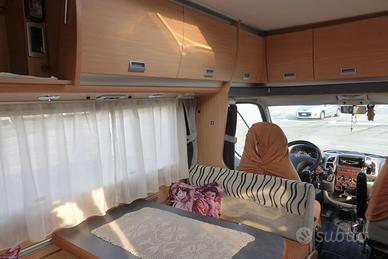Anno 2005, unico proprietario, accessori :doppio riscaldamento, altro riscaldamento durante il viaggio, pannello solare 200 watt., cruis control, 140 cv,150 mila chilometri, motore perfetto 2.8 jtd,satellitare, codizionamento cabina,frigo grande ,e tant'altro.Non rispondo a domande sensa un significato. Qualità superiore mezzo perfetto sempre in capannone adoperato solo da due persone . Ampio garage per moto,letto matrimoniale sopra , la dinet divanta matrimoniale.