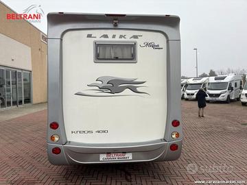 Laika Kreos 4010 semintegrale usato anno 2013, in pronta consegna, tenuto molto bene e pronto per partire. Layout pratico e molto richiesto, con letto matrimoniale trasversale in coda, ideale per chi vuole comfort notturno senza rinunciare alla vivibilità della zona giorno. Camper con 4 posti omologati e 4 posti letto grazie al letto basculante sopra la dinette, perfetto per viaggi in coppia o in famiglia, con qualità costruttiva Laika e ambienti accoglienti.