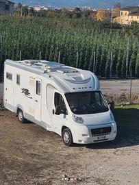 - Funzionalità e spazi: sedili cabina girevoli, letto basculante elettrico con possibilità di ulteriore posto letto, dispensa extra sopra al frigo, grande garage illuminato, predisposizione portamoto/gancio traino, barra antiurti posteriore, doppio serbatoio acque chiare, doccetta esterna caldo/freddo, veranda, armadio con cassetti riscaldati, luce esterna, zanzariere, frigo trivalente 150L con ventilazione forzata, cappa aspirante, oblò panoramico, bagno con doccia separata, cucina 4 fuochi e forno a gas con girarrosto.