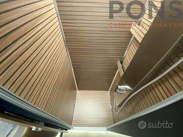 Il veicolo ha una lunghezza di 7,89 mt e una larghezza di 2,30 ed è dotato di una luminosa zona giorno con sedili guida girevoli, tavolo con piano traslabile, cucina con piano cottura a 3 fuochi, coprilavello multifunzionale (tagliere), cassetti, per l'organizzazione delle stoviglie, con chiusura rallentata, forno a gas, frigo grande con scomparto freezer; bagno con doccia separata e zona notte posteriore con letti gemelli, vani stivaggio con guardaroba estraibile.