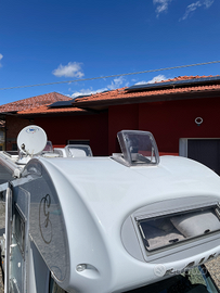 Mansardato con antenna satellitare antenna digitale terrestre, due letti matrimoniali con televisore. Due serbatoi acque chiare tre serbatoi acque grigie. Gas dual control truma, doccino esterno. Gas esterno attacco rapido. Condizionatore a tetto truma. Inverter 3000 watt. Oblò panoramici. Tendalino. Frigo grande trivalente. Ammortizzatori ad aria. Aria condizionata in cabina. Porta bici a telaio tipo porta moto. Pannello solare. Carrozzeria perfetta.