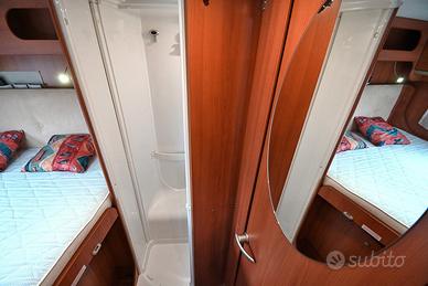 LAIKA X 710r: stupendo semintegrale dedicato alla coppia, con una configurazione quasi unica! Ampio living anteriore, grande cucina a "L" dotata di frigorifero a colonna e forno, bagno con box doccia indipendente, garage e letto matrimoniale trasversale dotato di piano variabile elettricamente in altezza.