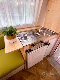 o Impianto acqua interno finzionante, collegabile a taniche esterne alloggiate nel gavone, per alimentare lavello cucina e lavandino del bagno