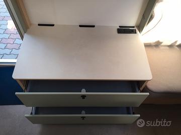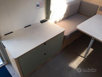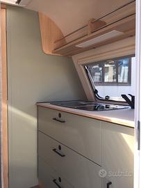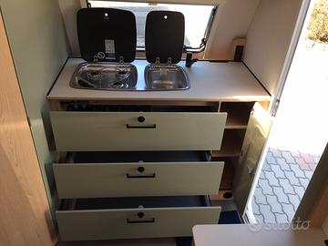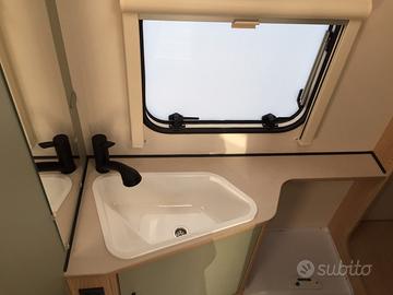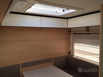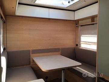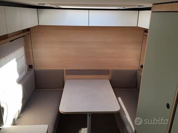 Splendida roulotte dall'incredibile abitabilità. Particolarmente indicata per la coppia dinamica amante degli spostamenti frequenti senza rinunciare a spazi ampi e molto vivibili. Grande e comodo blocco cucina anteriore, frigorifero a colonna, locale toilette con doccia, zona centrale con spazio in abbondanza ed in coda la dinette che si trasforma in matrimoniale in un batter d'occhio. Assolutamente da vedere