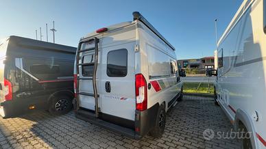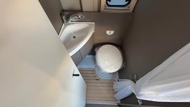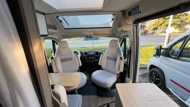 Gradino ingresso ampio Cerchi in lega da 16" Traction Plus Volante multifunzione Paraurti nel colore del veicolo Veranda Retrocamera nella terza luce di stop Pedana doccia in legno Midi Premium skylight (dinette) Dotazioni doccia Finestra in bagno Sistema oscuranti a rullo cabina guida Barra appendiabiti in bagno Porta con zanzariera Roatable top for table widening Predisposizione radio con altoparlanti e antenna a tetto Captain Chair Steering wheel and gear shift in leather model Cruscotto con applicazioni in alluminio Fari con cornice nera Griglia di raffreddamento nera lucida Serbatoio acque grigie isolato Additional cushion for extra bed Predisposizione TV Serbatoio acque grigie riscaldato elettricamente