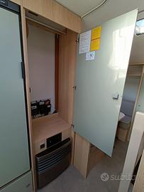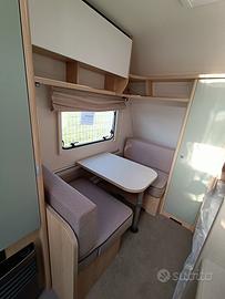 Predisposizione TV a schermo piatto, Illuminazione tendalino a LED, Copertura della barra di traino, Supporto ruota di scorta nel vano bombole, Porta con zanzariera, Illuminazione ambiente a LED, Termostato per la fornitura di acqua calda, Sistema di circolazione dell'aria 230 V, Porta d'ingresso comfort con finestra, incl. Pattumiera, Serbatoio 25 litri con ruote, Display per il serbatoio delle acque chiare, 2x USB, Tetto rinforzato con predisposizione per l'aria condizionata