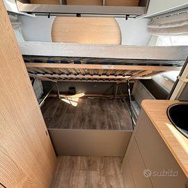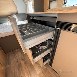 o Comfort interno: materassi in schiuma fredda, armadio bagno, cucina con fornello a tre fuochi e frigo da 83L
