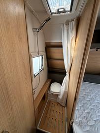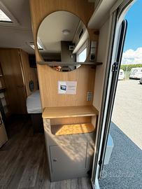 Display per serbatoio acque chiare, Porta ruota di scorta nel vano bombole del gas, predisposizione TV a schermo piatto, Porta d'ingresso comfort con finestra con pattumiera, Tasca portaoggetti in feltro, Oblò 750 x 500, Punto di forza dell'illuminazione: illuminazione indiretta, 2 prese USB per binario con luci, Illuminazione ambiente a LED, Copri barra di traino, Tetto rinforzato con predisposizione per l'aria