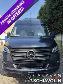 Chilometraggio: Condizioni: nuovo Immatricolazione: Tipologia: Camper - Puro Carburante: Diesel Tipo di cambio: Automatico POSSIBILITA' DI IMMATRICOLAZIONE CON 4 POSTI OMOLOGATI IN PATENTE B 3500 Kg OPPURE IN PATENTE C 4100 Kg Variante peso 4.100 kg (per Mercedes-Benz Sprinter) € 1.735,00Prolungamento telaio (predisposizione per gancio di traino) € 230,00Fendinebbia con luce di svolta € 415,00Fari LED High Performance € 2.615,00Portata ridotta da 4.100 kg a 3.500 Kg € 350,00Vernice metallizzata "GRIGIO TENORITE" € 3.070,00Cuneo sedile per ISOFIX € 95,00Speciale elemento decorativo esterno wave € 400,00Predisposizione impianto solare € 250,00Pacchetto prese: 3 prese USB / 2 prese da 230 V € 505,00Truma Duo Control CS € 455,00Serbatoio carburante da 93 litri € 475,00Ausilio elettrico di chiusura porta scorrevole € 505,00Finestra Dometic S7P lato passeggero nella zona letto posteriore € 455,00Guide di estrazione parzialmente incassate nella piastra del pavimento € 400,00Prolunga per letto posteriore € 300,00Corredo per letto Malibu e set decorativo € 425,00Tappezzeria PARIS € 435,00PACCHETTO TELAIO MERCEDES € 6.675,00 (Pacchetto acustica MBUX 10,2" Multimedia con navigatore / DAB+, Bocchette a lunga gittata nella plancia portastrumenti, Coperchio ribaltabile per superficie di appoggio, Sistema di retrocamera con lente singola, Predisposizione impianto elettrico gancio di traino incl. presa per rimorchio, Assistente alla segnaletica stradale regolabile in altezza, Sedili comfort in cabina rivestiti con la tappezzeria zona giorno incl. braccioli imbottiti, Sistema di oscuramento della cabina di guida Remis con plissè su parabrezza e sui finestrini laterali, Predisposizione radio con antenna sul tetto e DAB+, altoparlanti (4x), Freno di stazionamento elettrico, Vetro isolante termico con banda filtrante sul parabrezza, Strumento combinato con display a colori, Regolazione dell'inclinazione e dell'altezza dei sedili della cabina comfort (avanti/indietro),