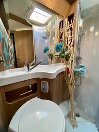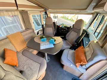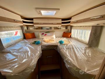 Pacchetto comfort: tendina plissettata con struttura ad alveoli con azionamento verticale e tendine plissettati sui finestrini laterali , pannello comandi digitale Truma CP Plus, predisposizione retrocamera (per camera lente singola), predisposizione TV, predisposizione impianto satellitare, oblò midi heki sopra il gruppo seduta a L, porta cellula XL con doppia chiusura finestra e zanzariera avvolgibile, presa Usb nel pensile sopra il letto posteriore, illuminazione diffusa indiretta abitacolo e cucina con tecnologia LED, grande porta del garage lato guidatore, luci posteriori Malibu con strisce LED, predisposizione dell'impianto solare aerazione toilette SOG tramite camino sul tetto, set tubi per acque reflue per un comodo smaltimento,