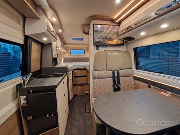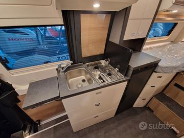 Pacchetto Cellula € 2.350,00Pannello comandi digitale Truma CP PlusZanzariera dietro porta scorrevoleRivestimento tetto con strato di microfibra coibenteSerbatoio acque chiare e acque grigie isolato, serbatoio acque chiare con riscaldamento aggiuntivoRifinitura cucinaApplique da soffitto zona giorno con illuminazione diffusa LED indirettaMaterassi di qualità in schiuma fredda nel letto posteriore
