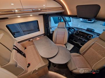 Pacchetti e accessori:Pacchetto telaio € 11.680,00Pacchetto acustica MBUX 10,2" Multimedia con navigatore / DAB+Bocchetta a lunga gittata nella plancia porta strumentiCoperchio ribaltabile per superficie di appoggioSistema di retrocamera con lente singolaPredisposizione impianto elettrico gancio di traino incl presa per rimorchioAssistente alla segnaletica stradaleSedili regolabili in altezzaSedili comfort in cabina rivestiti con la tappezzeria zona giorno incl braccioli imbottitiSistema di oscuramento della cabina guida Remis con plissè su parabrezza e sui finestrini lateraliPredisposizione radio con antenna sul tetto e DAB+, altoparlanti (4x)Freno di stazionamento elettricoVetro isolante termico con banda filtrante sul parabrezzaStrumento combinato con display a coloriBooster di ricaricaVolante in pelle