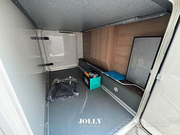 La dotazione comprende pannello solare, doppia batteria servizi, videocamera posteriore, tendalino e numerosi comfort pensati per la sosta libera e il viaggio in ogni stagione.