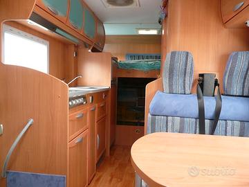 Pronto a partire, no infiltrazioni, 6 Posti letto 5 viaggio. Ampio garage, castello posteriore largo 105 cm. Inferiore a 7 metri quindi può viaggiare in terza corsia. Frigo da 145 litri, maxi oblo Seiz sulla dinette, doccia separata. Doppio riscaldamento, Truma combi a gas e riscaldatore a gasolio supplementare utilizzabile in viaggio. Sospensioni pneumatiche nuove 4 gomme Michelin Cross Climate 4 stagioni buone. Pannelli fotovoltaici 120 W con centralina MPPT Victron + DC DC converter Victron da 30 A gestibili tramite BT e APP da smartphone. Doppia retrocamera, visione posteriore e visione sullo scarico grigie per centrare il punto senza scendere dal mezzo. Antifurto. Radio Sony, Cassaforte. Il mezzo dentro è molto ben tenuto mobili tessuti puliti sempre coperti, no fumatori, no animali ,faretti a LED. Ci teniamo particolarmente. Acque chiare 105 litri predisposizione per doccetta esterna garage semi attrezzato.