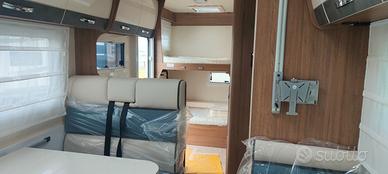 Doppia dinette centrale,ampia mansarda, letti a castello in coda e grande vano toilette con doccia separata.Completano la dotazione il comodo frigorifero slim tower e la presenza di Boiler/Stufa Combi TRUMA con funzionamento a gasolio.Tutto entro i 7 metri di lunghezza!!