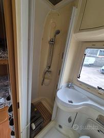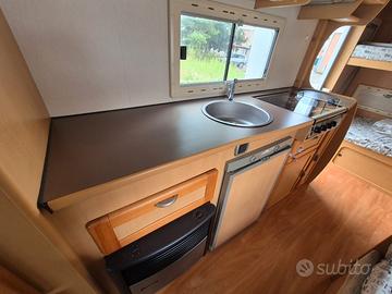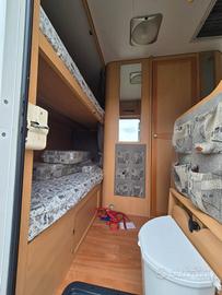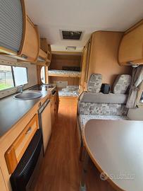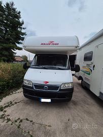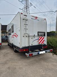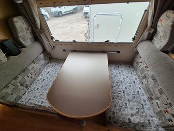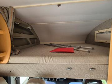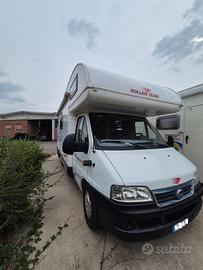Splendido camper mansardato ROLLERTEAM GRANDUCA 64 motore ducato 2.8 anno 2004 5 posti viaggio e 6 posti letto km: 80.000 completo di letti a castello posteriori e dinette trasformabile in letto matrimoniale completo di portamoto, pannello solare e tendalino