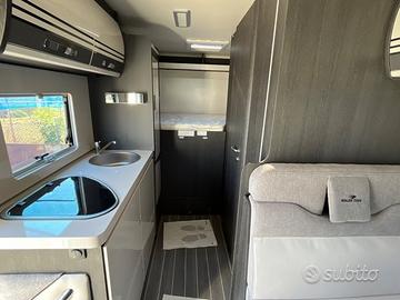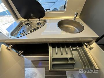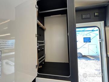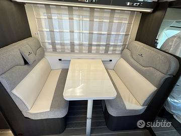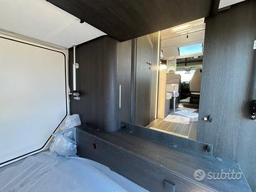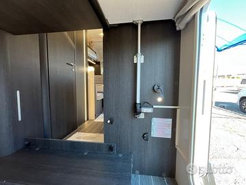 PRONTA CONSEGNA : ESCLUSIVA ITALIA CON OBLO' MANSARDA Mansardato Kronos 279 M 6 posti omologati 8 posti letto MOTORIZZAZIONE 2.2 MJ 140 CV MASSA MASSIMA AMMESSA 3500 kg MASSA IN ORDINE DI MARCIA 2850 kg PASSO 3800 mm PESO MASSIMO RIMORCHIABILE 2000 kg CLIMATIZZATORE MANUALE CABINA AIR BAG GUIDATORE & PASSEGGERO CRUISE CONTROL CON LIMITATORE VELOCITA' ABS / ESC / TRACTION RADIO 9 pollici DAB BLUETOOTH CON USB E COMANDI AL VOLANTE LETTO SUPPLEMENTARE DALLA DINETTE TRASFORMABILE LETTO POSTERIORE (CM) 216 X 130(110) | 216 X 127(110) LETTO SUPPLEMENTARE AUSILIARIO IN DINETTE (CM) 168125 LETTO MANSARDA 210 X 160 GAVONE (APERTURA UTILE, CM) 128 X 100(72) | 128 X 100(72) ALTEZZA MASSIMA INTERNA GARAGE (CM) 135 SPESSORE PAVIMENTO / PARETI / TETTO (CM) 5,4 / 3 / 3 MATERIALE PAVIMENTO / PARETI / TETTO MTS / VTR / VTR TETTO IN VETRORESINA, ANTIGRANDINE FUOCHI 3 CAPACIT MAX SERBATOI: ACQUE CHIARE, ACQUE GRIGIE (L) 20(100) / 100 FRIGORIFERO TRIVALENTE AUTOMATICO 135 lt FINESTRA BAGNO (DOPPIO VETRO OPACA) PIATTO DOCCIA CON DOPPIO SCARICO GRADINO DI ENTRATA INTEGRATO GAVONE GARAGE RISCALDATO OBLO POSTERIORE (MM) S (400 X 400) OBLO DINETTE (MM) (400 X 400) FINESTRE CON DOPPI VETRI CON OSCURANTE/ZANZARIERA OSCURANTE TERMICO DOGHE NEI LETTI ILLUMINAZIONE INTERNA A LED ZANZARIERA PER PORTA INGRESSO PORTA CELLULA XL CON FINESTRA LUCE ESTERNA A LED PACK KRONOS : 2900 EURO Fendinebbia Paraurti anteriore in tinta con la carrozzeria Piastra paramotore nera Cerchi in lega da 16'' bicolore Volante e pomello del cambio in pelle Techno Dashboard TPMS - Controllo automatico della pressione dei pneumatici Freno a mano elettrico Porta con 2 punti di chiusura, con finestra e chiusura centralizzata Pannello solare da 200 W con regolatore MPPT Oscurante plissettato OPTIONAL PRESENTI SU VEICOLO : SKYROOF MANSARDA IN ESCLUSIVA ITALIANA : + 1000 EURO ISOFIX : 160 EURO TRUMA DIESEL : 625 EURO PREZZO CHIAVI IN MANO SU STRADA : 72675 EURO Pre