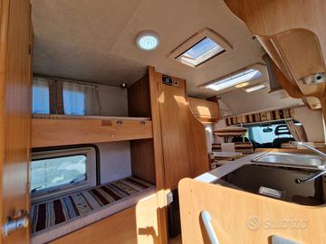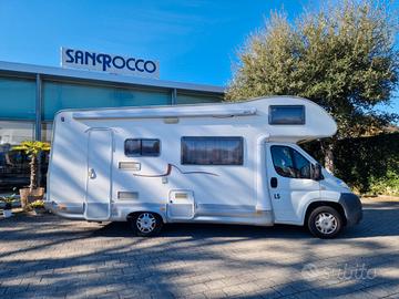 Motorizzazione:Fiat Ducato 2,3 Posti omologati:6 Posti letto:7 Lunghezza mt:7,06 Larghezza mt:2,35 Km:86200 Accessori: Tendalino Antenna TV digitale terrestre Pannello solare Retrocamera Portabici Gancio traino Multimedia Condizionatore cabina
