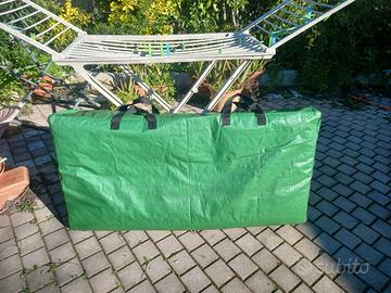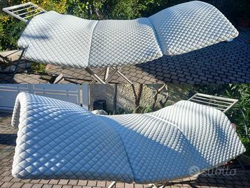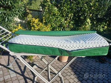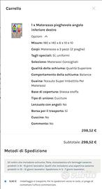 Materasso pieghevole (2 pieghe) realizzato su misura (Misure 180cm x 140cm x 6cm con taglio 10cmx10cm angolo basso dx) in spuma, sfoderabile con rivestimento lavabile antimacchia. Aperto ma MAI USATO per aver sbagliato l'ordine. Ho richiesto il taglio dell'angolo basso destro quando, in realta', necessitavo del taglio nell'angolo basso sinistro. mio errore, ergo, nessuna possibilita' di restituzione e rimborso. Comprato a gennaio 2025. Praticamente NUOVO. Vendo con uno sconto di otre 100 euro sul prezzo finale ordine (vedi immagine carrello ordine su sito web del produttore). Incluso nel prezzo fodera impermeabile, antistrappo/taglio, con manici, per protezione in caso di non uso e per faciile trasporto/.stoccaggio (vedi foto).