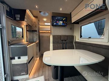 CARATTERISTICHE PRINCIPALI DI QUESTO CAMPER: Data immatricolazione: 08/2025 Meccanica: Ford Transit 35 2.0 ecoblue 165cv Cilindrata: 1996 cm³ Cavalli: 165 cv Euro: 6e Altezza: 285 cm Larghezza: 215 cm Lunghezza: 599 cm Posti Omologati: 4 Posti Letto: 3 Compatto semintegrale Mc Louis MC4 331 slim su meccanica Ford Transit 2000cc 165cv, 4 posti viaggio. Il veicolo, lungo soli 5,99m e largo 2,15m ha percorso meno di 7.500km ed è stato immatricolato ad agosto del 2025. Entrando sul veicolo ci si affaccia immediatamente su una luminosa dinette con sedili cabina girevoli e tavolo orientabile. Sul lato dx troviamo la cucina lineare composta da lavello, piano cottura a due fuochi e frigo a colonna molto capiente. In coda è collocato il letto matrimoniale trasversale mentre sopra alla dinette troviamo il secondo letto, basculante elettrico. Il bagno vario ospita nello stesso vano sia l'ambiente doccia che quello toilette grazie alla rotazione della parete. Sebbene le dimensioni contenute, non manca un comodo garage Prezzo del veicolo compreso di accessori € 58.000 Equipaggiamenti del veicolo: - Antenna tv - Autoradio - Chiusure centralizzate - Comandi radio al volante - Letto basculante elettrico - Oscuranti Plissettati - Porta con zanzariera - Portabici esterno - Portabici per E-bike artigianale interno - Retrocamera - Sky view - Turbovent - Veranda ! Sui veicoli in conto vendita non si effettua ritiro dell'usato ! [Cod: 1095681-845]