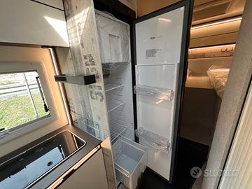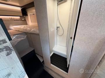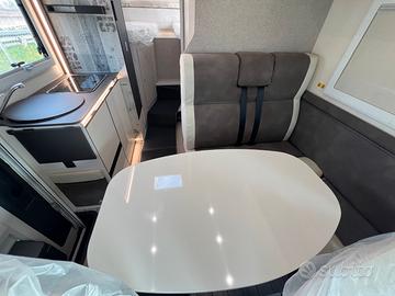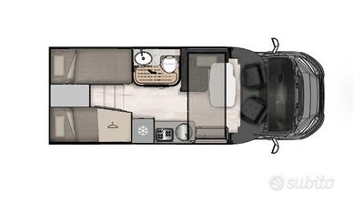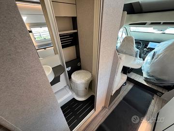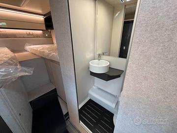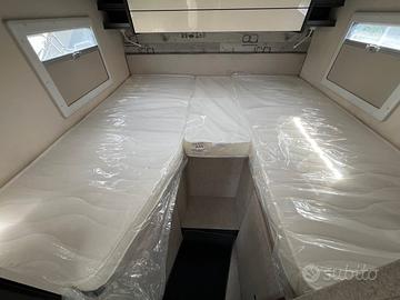 Il profilato Mc4 339 Slim è composto da letti gemelli posteriori trasformabili in letto matrimoniale e letto basculante singolo elettrico.