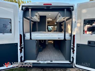 Furgonato versatile e spazioso da 5,99 m con letto matrimoniale basculante longitudinale e grande volume di carico posteriore.