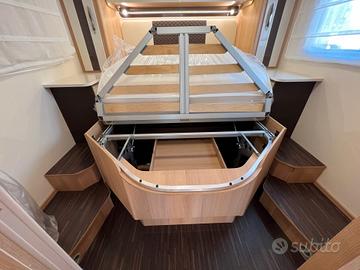 Il camper disponibile in azienda in pronta consegna è 745 cm. di lunghezza con letto nautico, bagno e doccia separati,