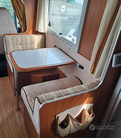 Doppia dinette con 4 posti comodi + 2 nel secondo tavolino entrambi trasformabile in poltrone/letti. In dotazione anche una prolunga per un tavolo per 8 persone.