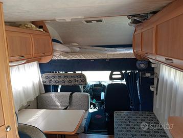 Vendesi, per cambio tipologia, camper mansardato MCLouis 410 Lagan. Il camper è lungo solo 5 metri e 58 cm, per questo è estremamente maneggevole.