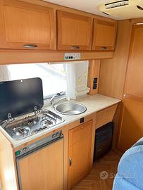 Autocaravan omologato 6 posti in ottime condizioni dotato di: antenna TV, TV, retrocamera Garmin, doppio serbatoio acque potabili, Portabici Clima cellula, Turbovent Cucina di bordo Pannello solare Riscaldamento a veicolo fermo Sistema di navigazione Servosterzo Tendalino scalino porta ingresso gavone sotto scocca Toiletta Letto matrimoniale Letti a castello