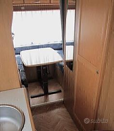 Mansardato 6 posti con salottino in coda. Ottime condizioni, sempre rimessato al coperto. Disposizione: doppia dinette, classica quella centrale ad "u" quella posteriore che forma un salottino, all'occorrenza si trasforma in un comodo letto matrimoniale basso, cucina lineare con forno, bagno grande con doccia separata. Meccanica: Fiat 2.8 jtd 127 cv. Accessori: tendalino, pannello solare, porta bici, impianto tv, sospensioni pneumatiche.