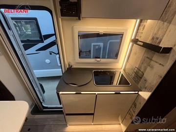 Con una larghezza ridotta di soli 2,15 metri e una lunghezza contenuta di 6,69 metri, questo semitintegrale maneggevole combina agilità di guida da van con il comfort e le dotazioni di un camper di categoria superiore.
