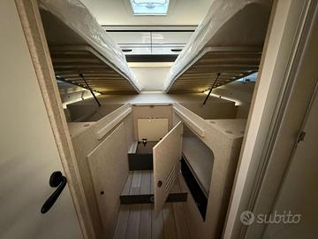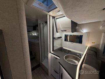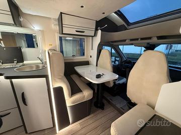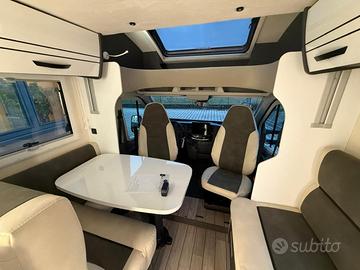Autoradio doppio din con retrocamera, Combi gas 4 kW, Dimensione letti posteriori 200x80/200x80, Dimensione letto basc. 200x140, Doghe letto, Frigo Trivalente, Isofix, Luce esterna Led, Pannello fotovoltaico, Presa 220V nel garage, Prese USB, Veranda, Volante e pomello in pelle , Zanzariera Porta ingresso