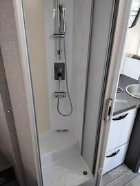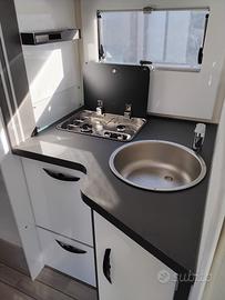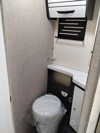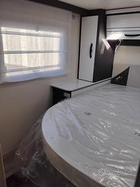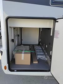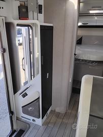 Accessori: veranda, attacco gas esterno, doccia in garage, pannello solare da 200 w con regolatore mppt, oscuranti plissettati in cabina, presa multimediale esterna, braccio di supporto TV, coprisedili cabina, autoradio Pioneer doppio din con retrocamera e display touch da 9" sensori di parcheggio anteriori, cruise control, climatizzatore automatico in cabina, fanali alogeni con drl, fari fendinebbia, assistenza al mantenimento della corsia, cerchi in acciaio 16"