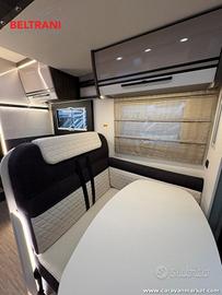 Il McLouis MC4 860 2026 è un semintegrale sotto i 7 metri che unisce comfort, design moderno e grande praticità. La disposizione interna offre una dinette living capiente e luminosa, con sedili cabina girevoli e tavolo centrale regolabile: un vero salotto su ruote. Nella zona posteriore trovi un ampio letto matrimoniale trasversale, comodo e ben accessibile, mentre il letto basculante elettrico anteriore permette di ricavare altri posti letto senza rinunciare allo spazio abitativo.