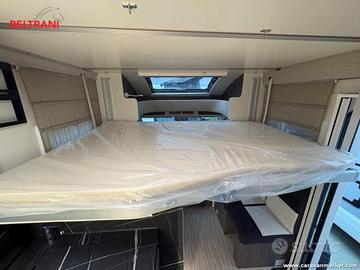 Il McLouis MC4 860 2026 è un semintegrale sotto i 7 metri che unisce comodità, design moderno e ampia praticità. La disposizione interna offre una dinette living spaziosa e luminosa, con sedili cabina girevoli e tavolo centrale regolabile: un vero salotto su ruote. Nella zona posteriore trovi un ampio letto matrimoniale trasversale, comodo e ben accessibile, mentre il letto basculante elettrico anteriore permette di ricavare altri posti letto senza rinunciare allo spazio abitativo.