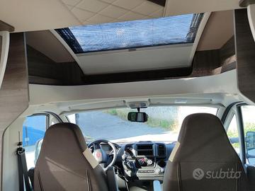 Bellissimo mezzo con letto posteriore trasversale e letto basculante anteriore. Possibilità di ricavare il quinto posto letto dalla dinette. Garage veramnete molto ampio con possibilità di regolazione manuale dell'altezza letto. Dotato di pannello solare 120 W, retrocamera, oscurante plissettato, cerchi in lega da 16 polllici, balestre in composito, calandra nera, skid plate nero, cornice fari nera, tration plus e fari fendinebbia.