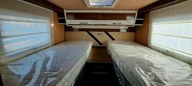 MC4 pack incluso: porta con finestra XXL e pattumiera chiusura con telecomando, fodere cabina, porta tv xtv 32", presa 230v garage, prese usb letto/giorno, tetto panoramico