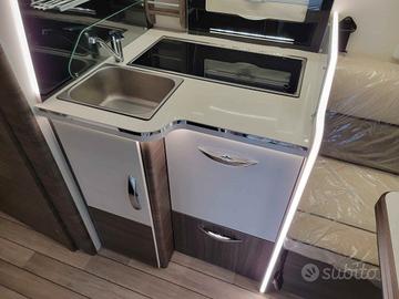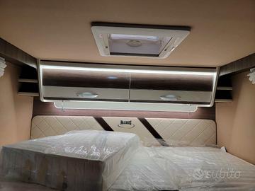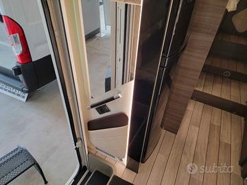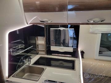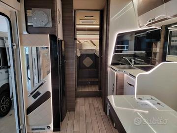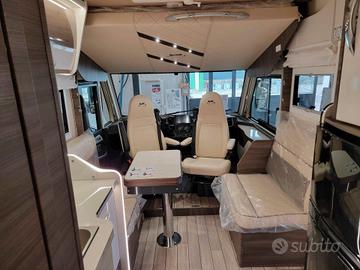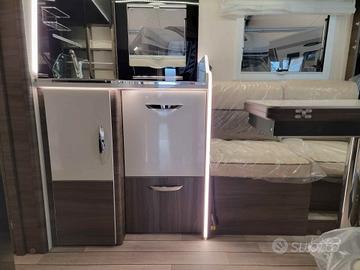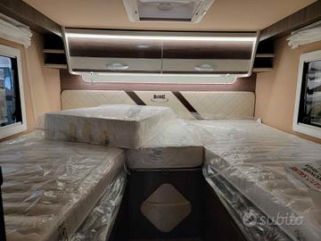 Air Bag Guidatore & Passeggero SCruise Control con limitatore velocità SABS / ESC / TRACTION + S/S/SSedili girevoli cabina guidatore e passeggero SFari a led DRL (Day runnig light) SPneumatici 4 stagioni SComandi radio al volante SDimensioni e postiLunghezza esterna (mm) / Larghezza esterna (mm) 7450 / 2350Altezza esterna (cm) / interna (cm) 295 / 208Letto supplementare dalla dinette trasformabile OLetto posteriore (cm) 200x80 + 200x80-200x212Letto supplementare ausiliario in dinette (cm) 216x103(75) (O)Letto basculante (cm) 185x134Posto aggiuntivo letto posteriore SGavone (apertura utile, cm) 115x95Altezza massima interna garage (cm) 121Spessore pavimento / pareti / tetto (cm) 5,4 / 3 / 3Materiale pavimento / pareti / tetto MTS / VTR / VTRTetto in vetroresina, antigrandine SImpiantisticaFuochi 3Capacità max serbatoi: Acque chiare, Acque grigie (l) 20(120) / 100Frigorifero trivalente automatico (220V, 12V, GAS) (l) 145Riscaldamento standard Combi Gas 4 kWSpazio per 2 bombole (tot. Max 15 kg) SFinestra bagno (doppio vetro opaca) SGradino di entrata integrato SGavone garage riscaldato SOblòOblò posteriore (mm) S (400x400) / O (960x655)Oblò centrale (mm) S (400x400)Oblò dinette (mm) S (700x500) / O (960x655)Finestre con doppi vetri con oscurante/zanzariera SDotazioniOscurante cabina plissettato SDoghe nei letti SPannello di controllo CP Plus SSupporto TV 32'' SIlluminazione interna a LED SEsterniPorta cellula con finestra fissa SZanzariera per porta ingresso SPorta cellula a due punti con chiusura centralizzata SPorta cellula XL SLuce esterna a LED S