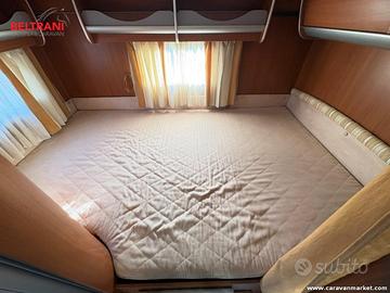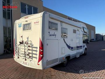 camper mansardato usato McLouis Tandy 636, perfetto per famiglie che cercano comodità e praticità. Con 4 posti letto omologati (mansarda matrimoniale sopra + Letto matrimoniale trasversale posteriore), offre notti serene per 4 persone senza compromessi.Il garage ampio è il suo asso nella manica: dimensioni generose per scooter, bici o bagagli extra, con accesso dall'interno al gavone per totale sicurezza e comodità anche in sosta. Spazi ampi ovunque: cucina a L attrezzata, bagno separato con doccia, living modulabile per relax quotidiano. Su base Fiat Ducato, affidabile e facile da guidare (7.12m dimensione totale).