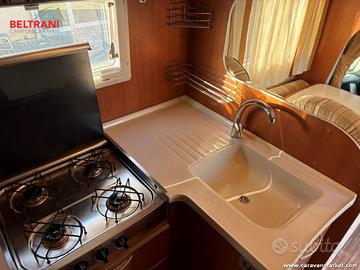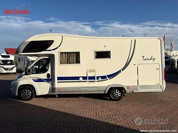 camper mansardato usato McLouis Tandy 636, perfetto per famiglie che cercano comfort e praticità. Con 4 posti letto omologati (mansarda matrimoniale sopra + Letto matrimoniale trasversale posteriore), offre notti serene per 4 persone senza compromessi.Il garage ampio è il suo asso nella manica: dimensioni generose per scooter, bici o bagagli extra, con accesso dall'interno al gavone per totale sicurezza e comfort anche in sosta. Spazi ampi ovunque: cucina a L attrezzata, bagno separato con doccia, living modulabile per relax quotidiano. Su base Fiat Ducato, affidabile e agile (7.12m misura in metri).
