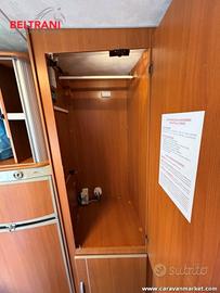 camper mansardato usato McLouis Tandy 636, perfetto per famiglie che cercano comodità e praticità. Con 4 posti letto omologati (mansarda matrimoniale sopra + Letto matrimoniale trasversale posteriore), offre notti serene per 4 persone senza compromessi.Il garage ampio è il suo asso nella manica: dimensioni generose per scooter, bici o bagagli extra, con accesso dall'interno al gavone per totale sicurezza e comodità anche in sosta. Spazi ampi ovunque: cucina a L attrezzata, bagno separato con doccia, living modulabile per relax quotidiano. Su base Fiat Ducato, affidabile e maneggevole (7.12m lunghezza).
