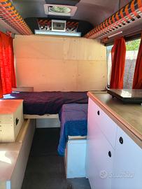 Indistruttibile Mercedes t1 410D del 1990 massa complessiva 46 quintali quindi guidabile con patente C con soli 88000 km omologato 3 posti uso speciale con vano posteriore officina mobile e vano centrale abitabile. Retrocamera. Tagliandato con sostituzione olio motore, filtro olio, filtro aria e filtro gasolio, gomme nuove, batteria nuova, barra sterzo e testine nuove, tutto funzionante. All'interno lavandino, piastra induzione, letto, tavolino richiudibile facilmente modificabile in base alle vostre esigenze, serbatoio acqua con pompa, oblò tetto ventilato, impianto elettrico con batteria al litio 200 ah e inverter. Nel retro scaffalatura e cassetti. Revisione valida fino a marzo 2027