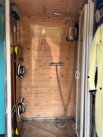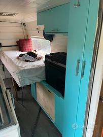 Allestimento interno rimovibile per tornare a uso furgone, resta solo la parete verticale della doccia