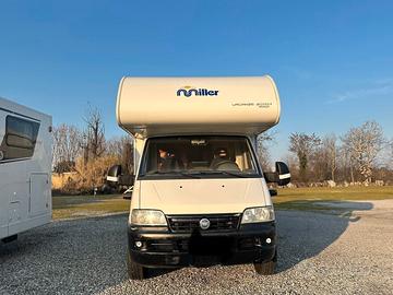 Miller NEW MESSICO su FIAT DUCATO cc. 2.800 cv.127 in soli mt. 6,88 posti omologati 6, posti letto 7 con box doccia separato e doppia dinete centrale. ACCESSORI : oscuranti plissettati+ ammortizzatori ad aria + pannello solare+ radio CD con casse posteriori + retrocamera + portamoto 100 kg. + riscaldamento Truma Combi 6 + riscaldatore a gasolio + due turbovent + tendalino + luce esterna + antenna tv + 2° serbatoio acqua + frigorifero trivalente 97 l. + attacco gas esterno + attacco doccia esterno + presa esterna tv + zanzariera sulla porta. OTTIME CONDIZIONI, USATO GARANTITO.