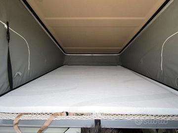 Camper super compatto lungo 5,45 m, largo 2,03 m ed alto 2,06 m (adatto per entrare nei parcheggi sotterranei o dove sono presenti sbarre). 4 posti letto e 4 omologati, con letto matrimoniale 230x118 cm nel tetto a soffietto e ulteriore letto 189x96 cm sotto, grazie alla dinette trasformabile.